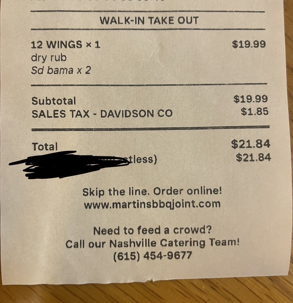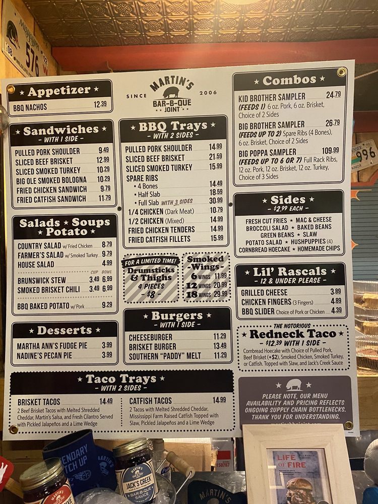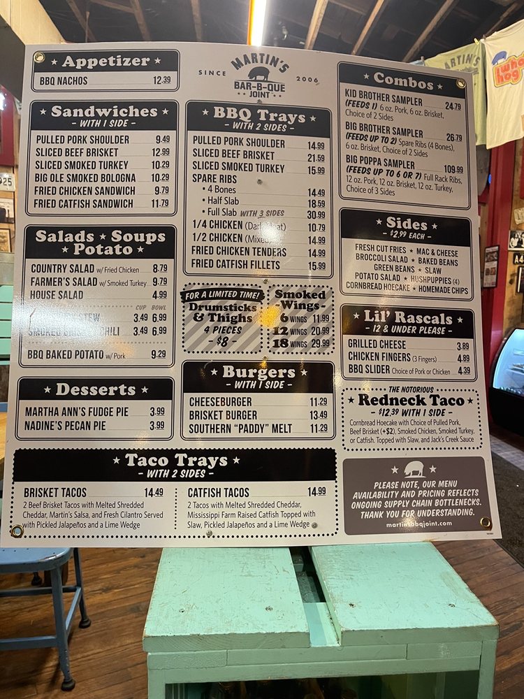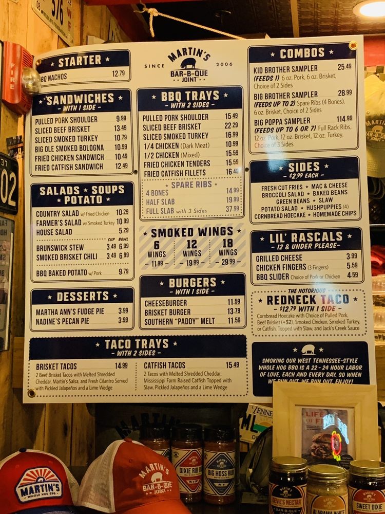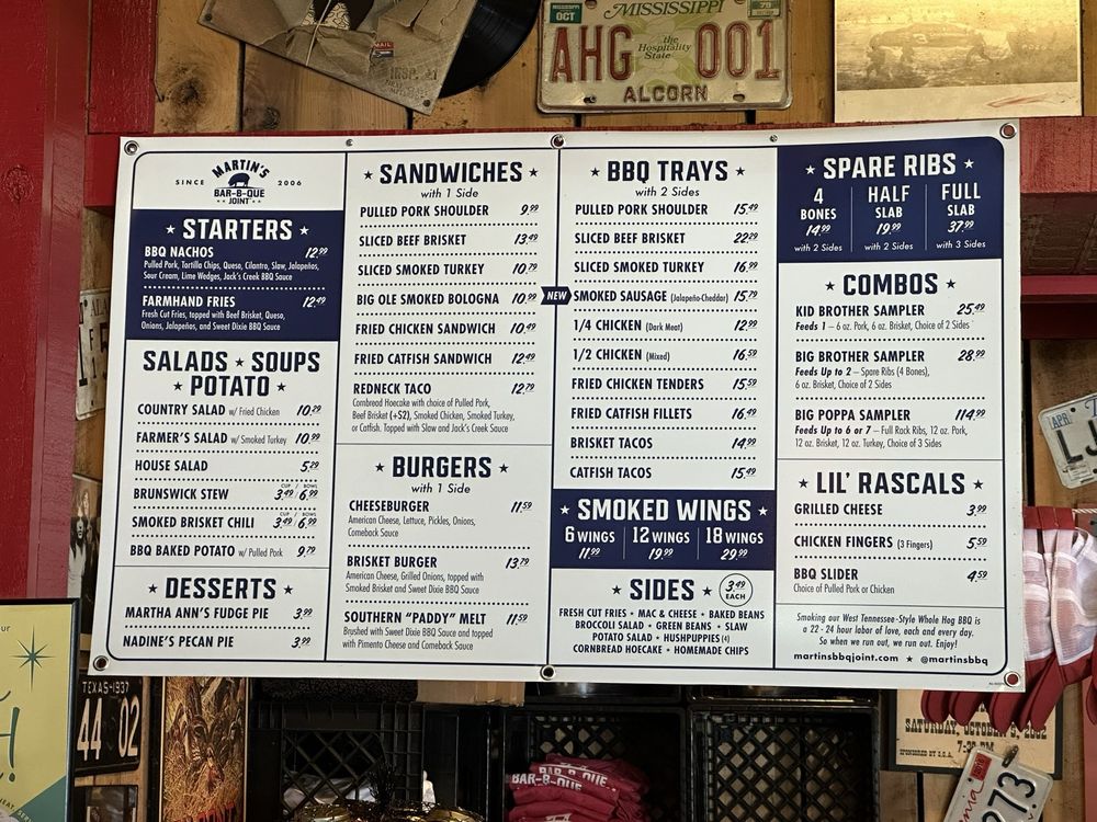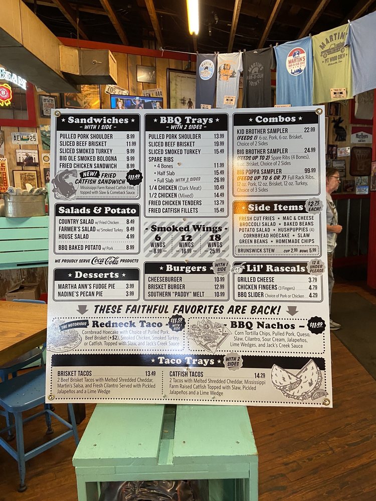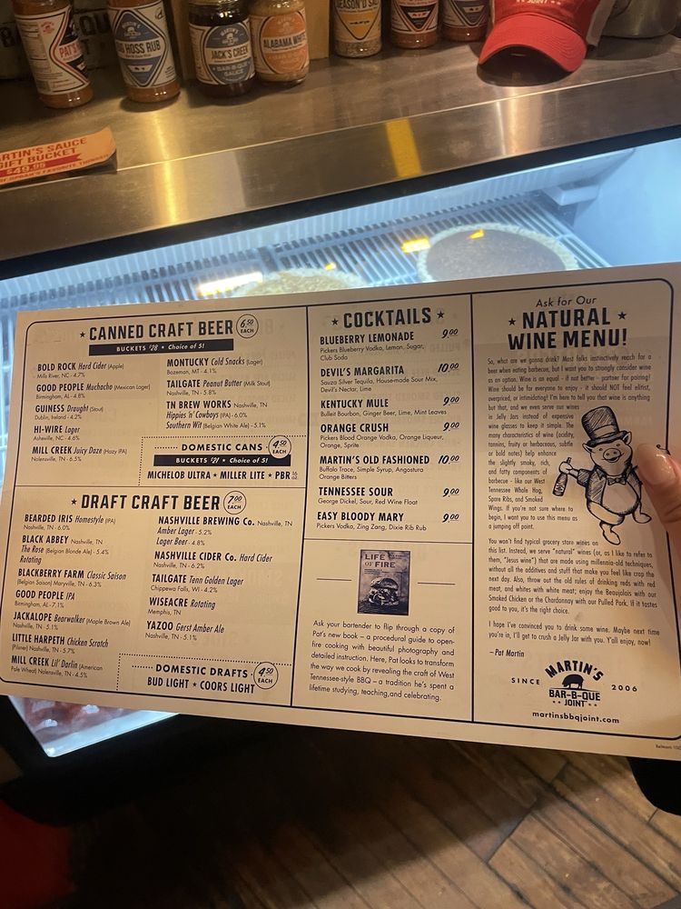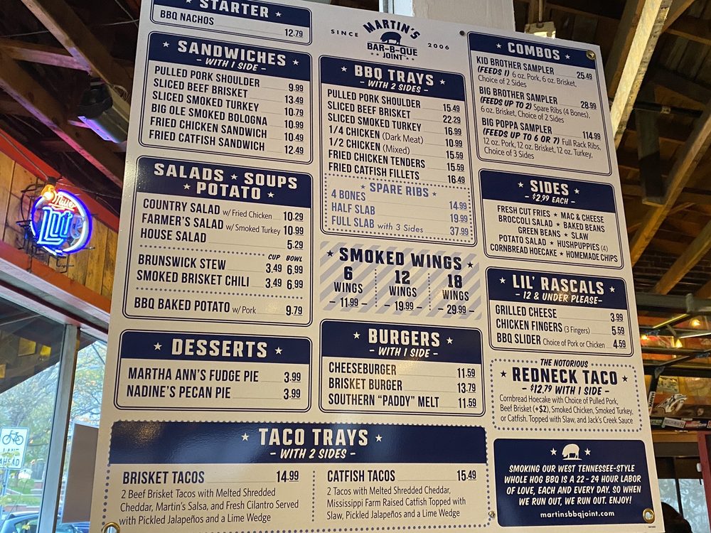 Martin's Bar-B-Que Joint Nashville Menu (Update 2025)